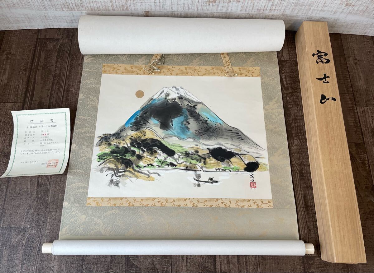 - 美品 真作 田崎広助【富士山】保証書 掛軸 刷り込み サイン 限定品 良品