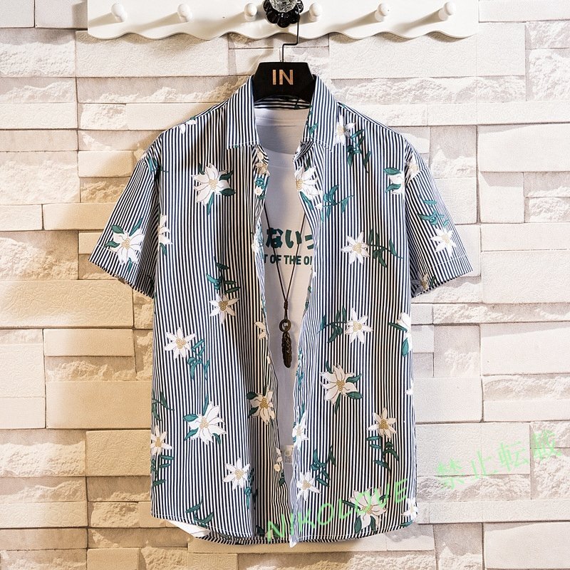 - 新品 シャツ 花柄 半袖アロハシャツ 夏 メンズ ハワイアン 総柄 半袖シャツ 薄手 カジュアルシャツ 涼しい 大きいサイズM~5XL