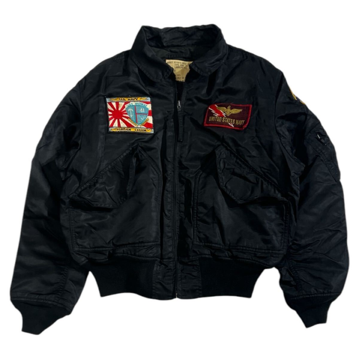 - 86年製 ヴィンテージ ■ ブランド不明 ■ カスタム ワッペン CWU-45 CWU45 ミリタリー フライトジャケット ブラック L