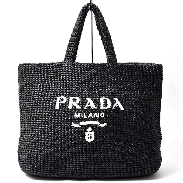 - プラダ バッグ レディース メンズ クロシェ トートバッグ かごバッグ ビスコース ブラック PRADA 1BG392 中古