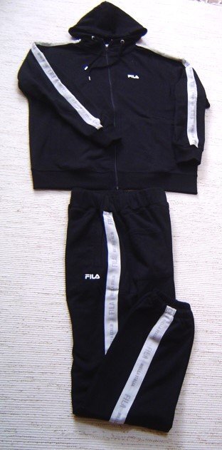 > セール15% 送料無料 FILA フィラ スウェット ロゴテープフルジップ パーカー パンツ 上下セット ワンポイント 裏パイル 黒 L FH8196 メンズ