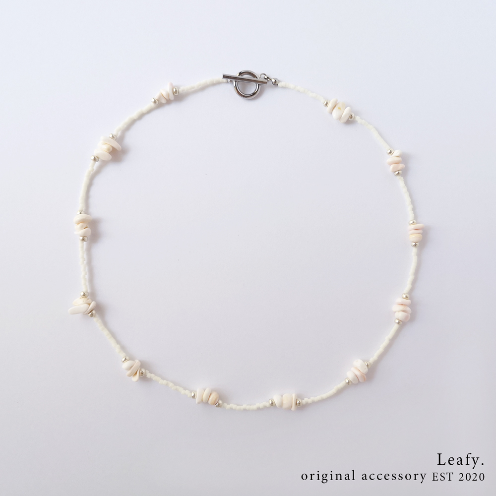 - summer..さざれシェルのホワイトビーズネックレス ビーズアクセサリー マンテル