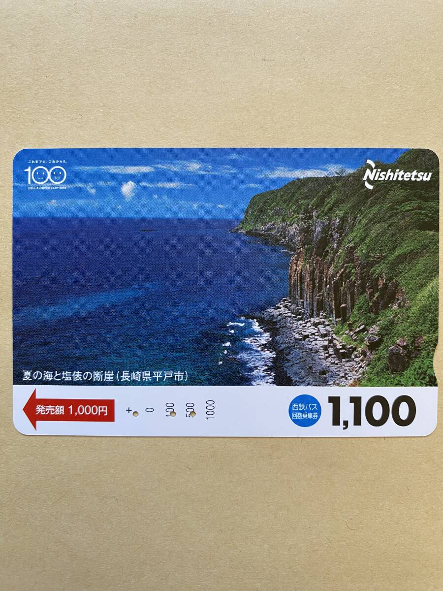 - 【使用済】 バスカード 西鉄バス 夏の海と塩俵の断崖 (長崎県平戸市)