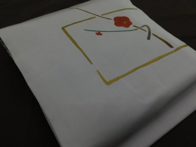 > 〔楽布〕P33350 手描き友禅 塩瀬 名古屋帯 k