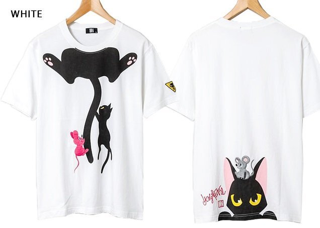 - ラミ&アール 何か見つけたの?半袖Tシャツ◆LIN ホワイト Mサイズ AL-75109 黒猫 ネコ ネズミ ユニセックス