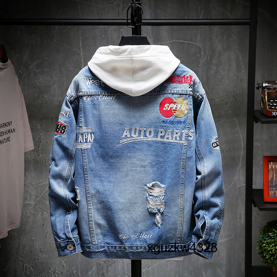 - 大人気 初売り ジャケット メンズ デニムジャケット 刺繍 ダメージ加工 ジャンパー ブルゾン ジージャン 大きいサイズ ブルー 黒 M~5XL選択