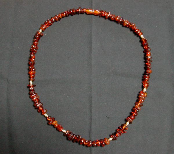 - ■美品:琥珀とK18のネックレス 琥珀の粒の間にK18の粒 DmZ12