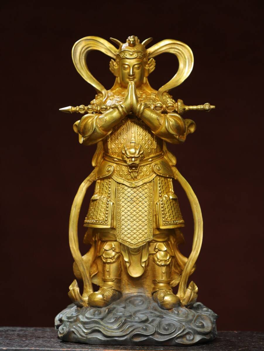 - 【超珍館蔵】銅製 塗金 韋陀仏 仏教古美術 供養品 古賞物 古美術品 稀少珍蔵品