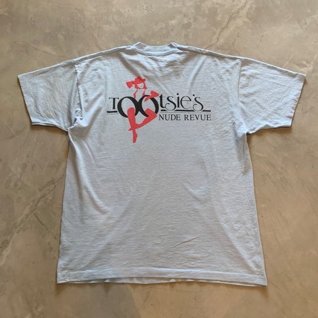 > 【XL】80s-90s USA製 Tootsies ストリップ プリントTシャツ 水色■ビンテージ オールド アメリカ古着 エロ シングルステッチ ナイトクラブ