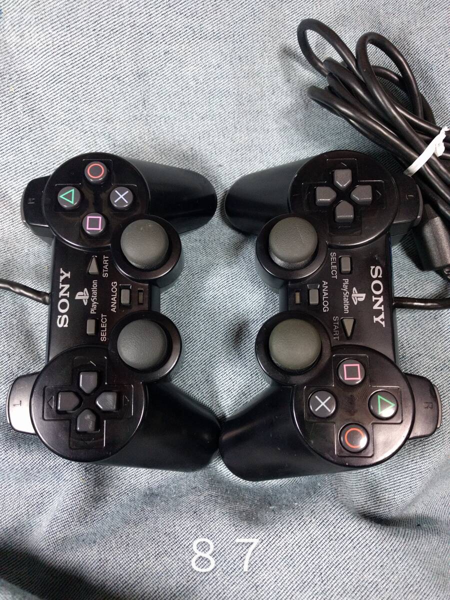 > 2つ 動作確認&分解掃除済み ミッドナイトブラック playstation2 SONY デュアルショック2 コントローラー SCPH-10010 管理87