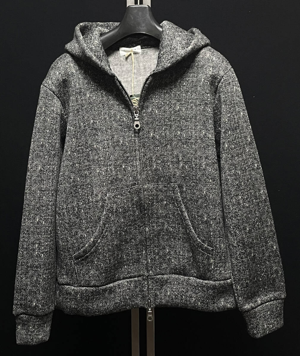 - 新品 SPINNER BAIT スピナーベイト フルジップ ニットパーカー ヘリンボーン調 黒 裏起毛