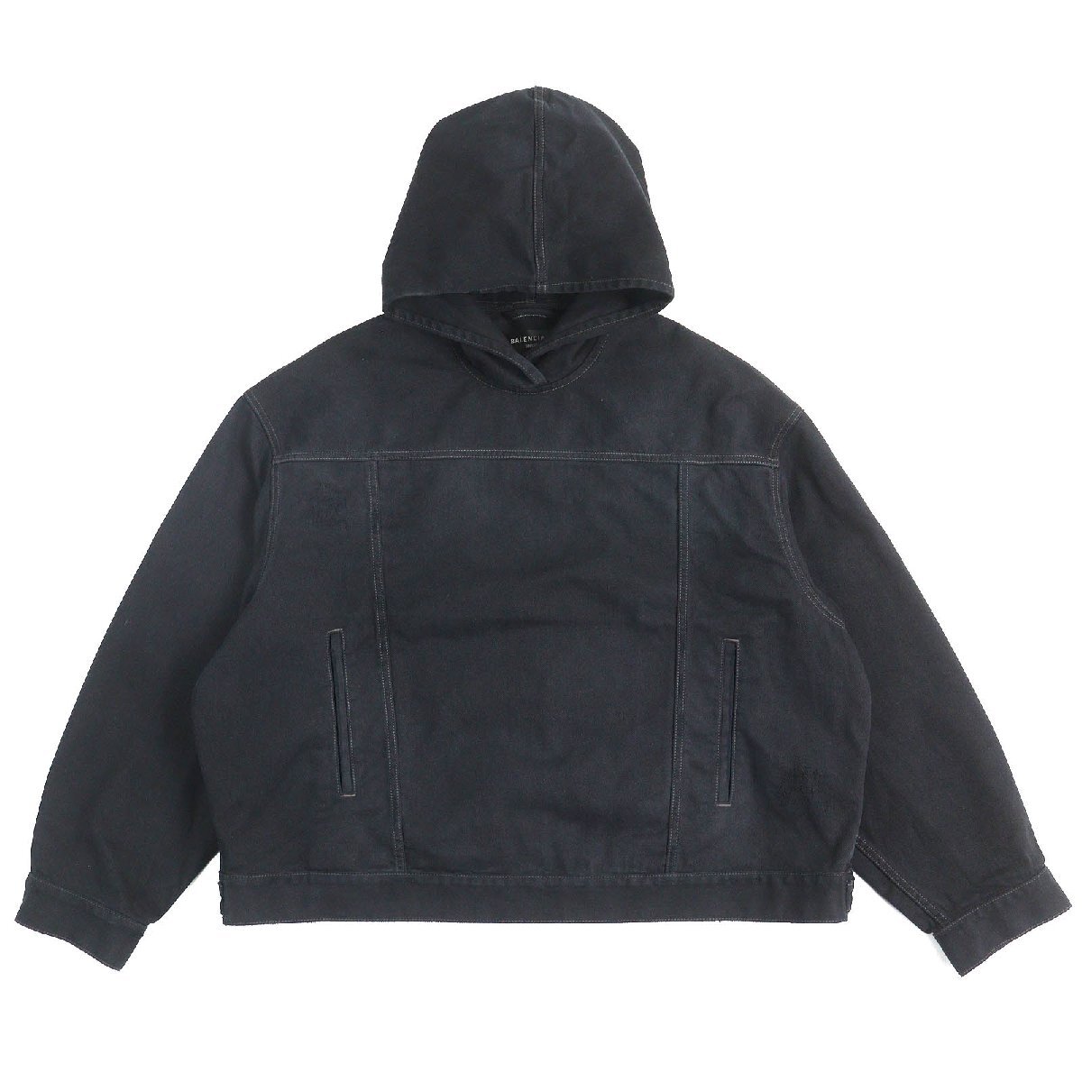 > 美品△BALENCIAGA バレンシアガ 22AW 719313 TNW54 DENIM FOODIE PULL-OVER PARKER ダメージ加工 デニムプルオーバーパーカー 1 正規品