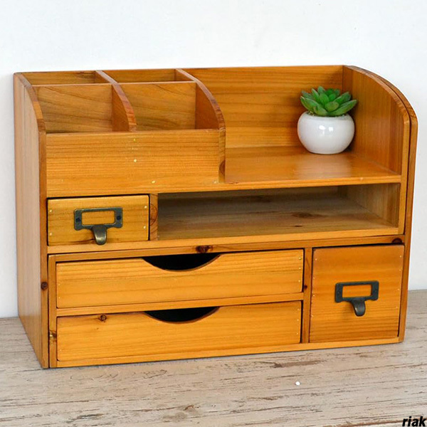 > 【伸縮型なので、自分のデスクに最適なサイズに調整可能】デスクオーガナイザー 伸縮自在 最大幅66cm 天然木材 収納ケース 多用途