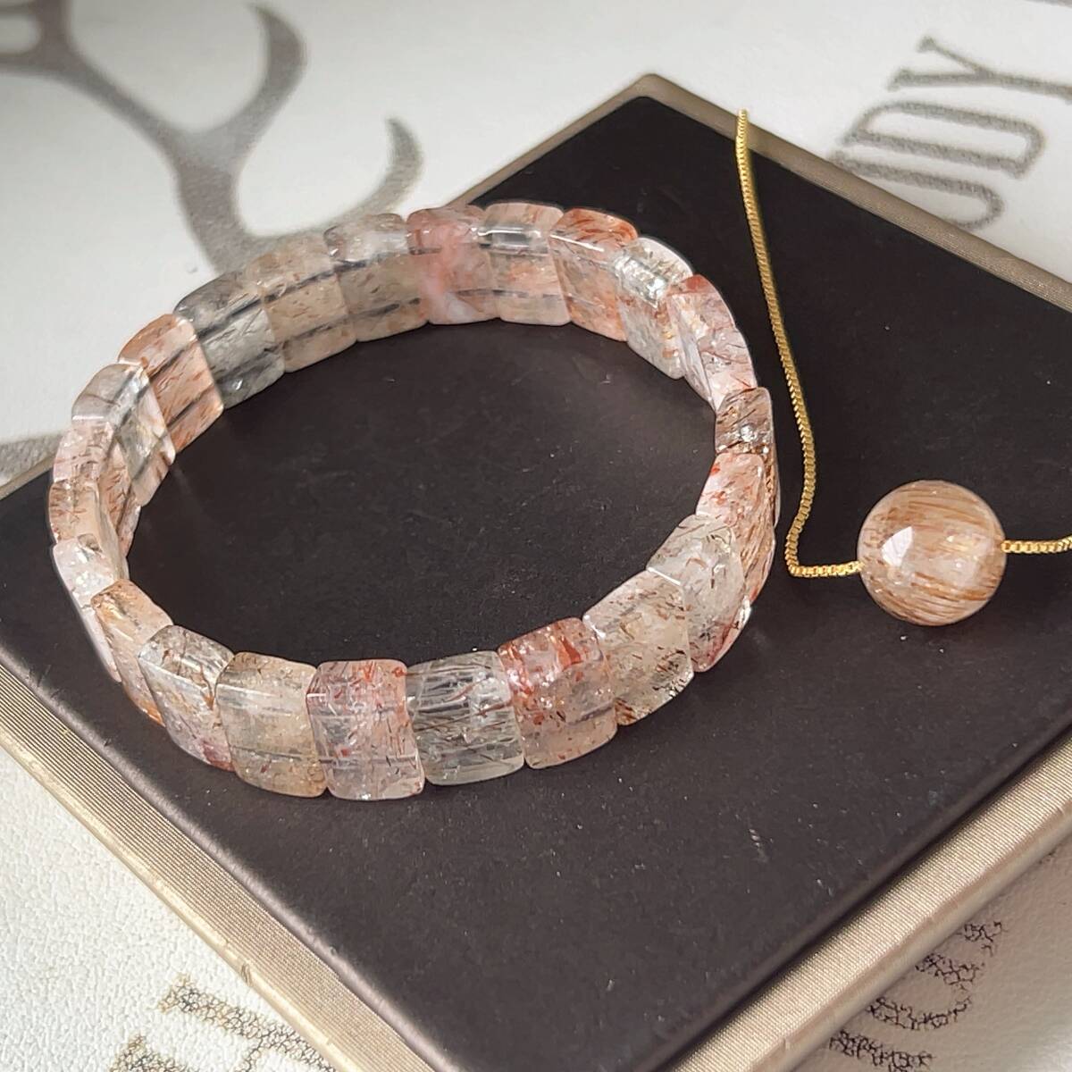 - ◇ブラックゴールドスーパーセブン◇三輪骨幹◇パワーストーン◇ネックレスペンダント+ブレスレット計2点セット◇天然石◇030S4151