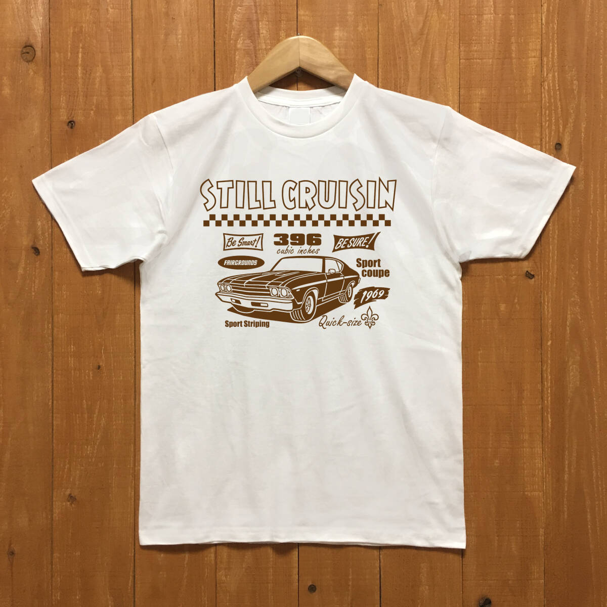 - ■STILL CRUISIN Tシャツ ■Sサイズ(ホワイトxブラウン)アメリカ アメ車 シボレー シェベル CHEVROLET CHEVY CHEVELLE