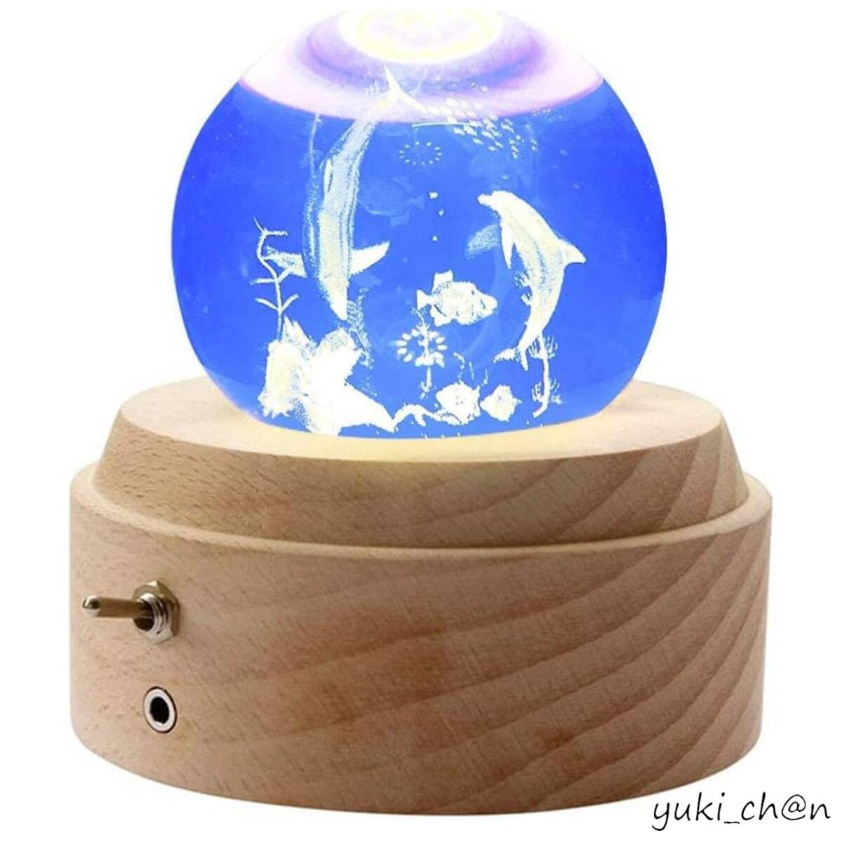- オルゴール クリスタルボール ナイトライト LED投影ライト ドルフィンズ 楽曲:天空の城ラピュタ インテリア 癒しプレゼント