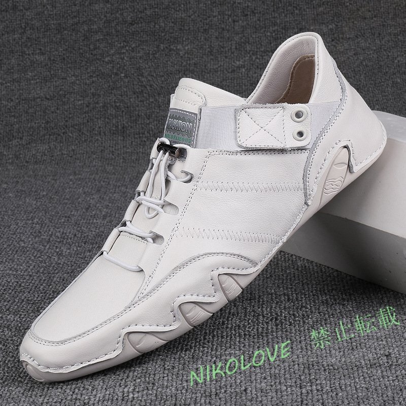 - 新品 2色 メンズ スニーカー スリッポン レザーシューズ カジュアル ローファー メンズ靴 ドライビングシューズ 紳士靴 柔らかい 白 26cm