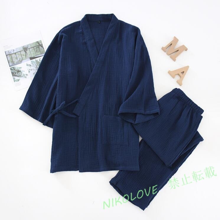 - 新品 夏物 羽織 メンズ 甚平 3色選べる 綿 薄手 浴衣 上下セット セットアップ 和服 ルームウエア 部屋着 パジャマ 作務衣 ネイビー