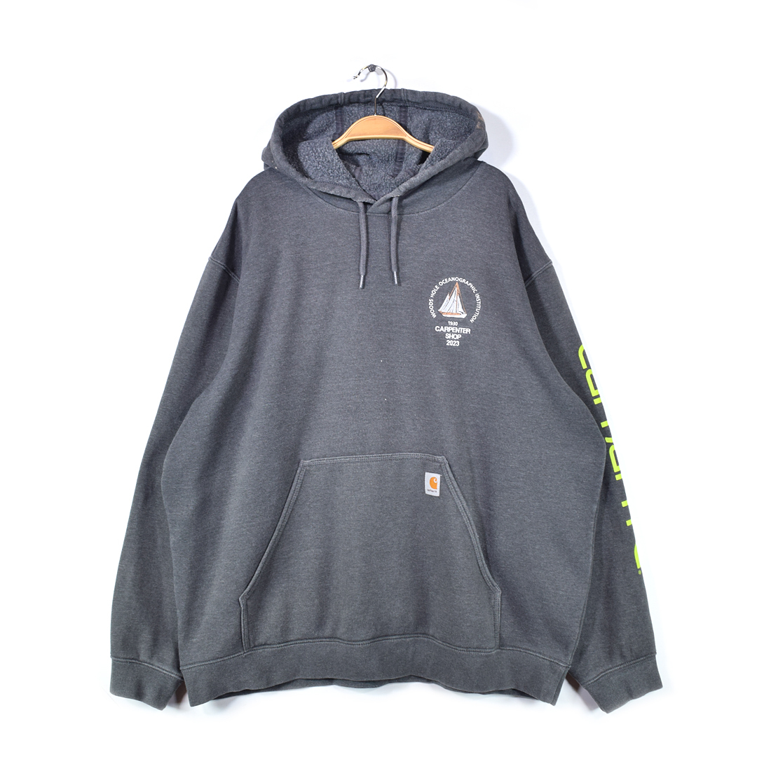 - 【送料無料】カーハート スウェットパーカー 企業別注 袖プリント グレー CARHARTT 大きいサイズ メンズ2XL 古着 @CG9010
