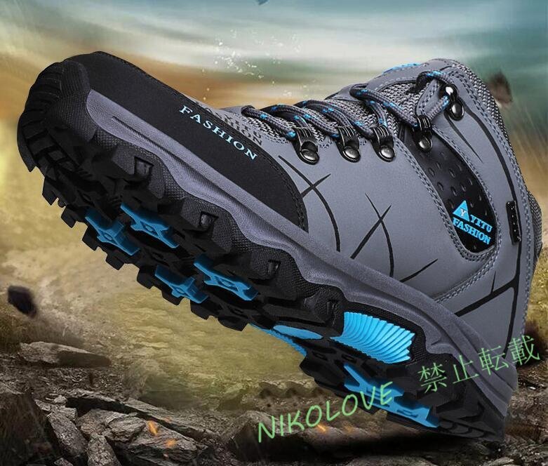 - 新品 メンズ トレッキングシューズ アウトドアシューズ ハイキング ウォーキング 登山靴 バイク用ハイカット大きいサイズ24.5~28.5cm 灰