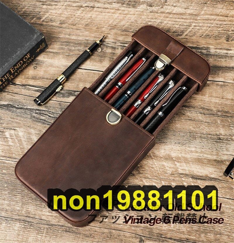- ペンケース 本革 牛革 6本差し シンプル おしゃれ コンパクト 軽い 小さめ スリム 筆箱 ふで箱 ポーチ 革小物 文房具 収納 贈り物 父の日