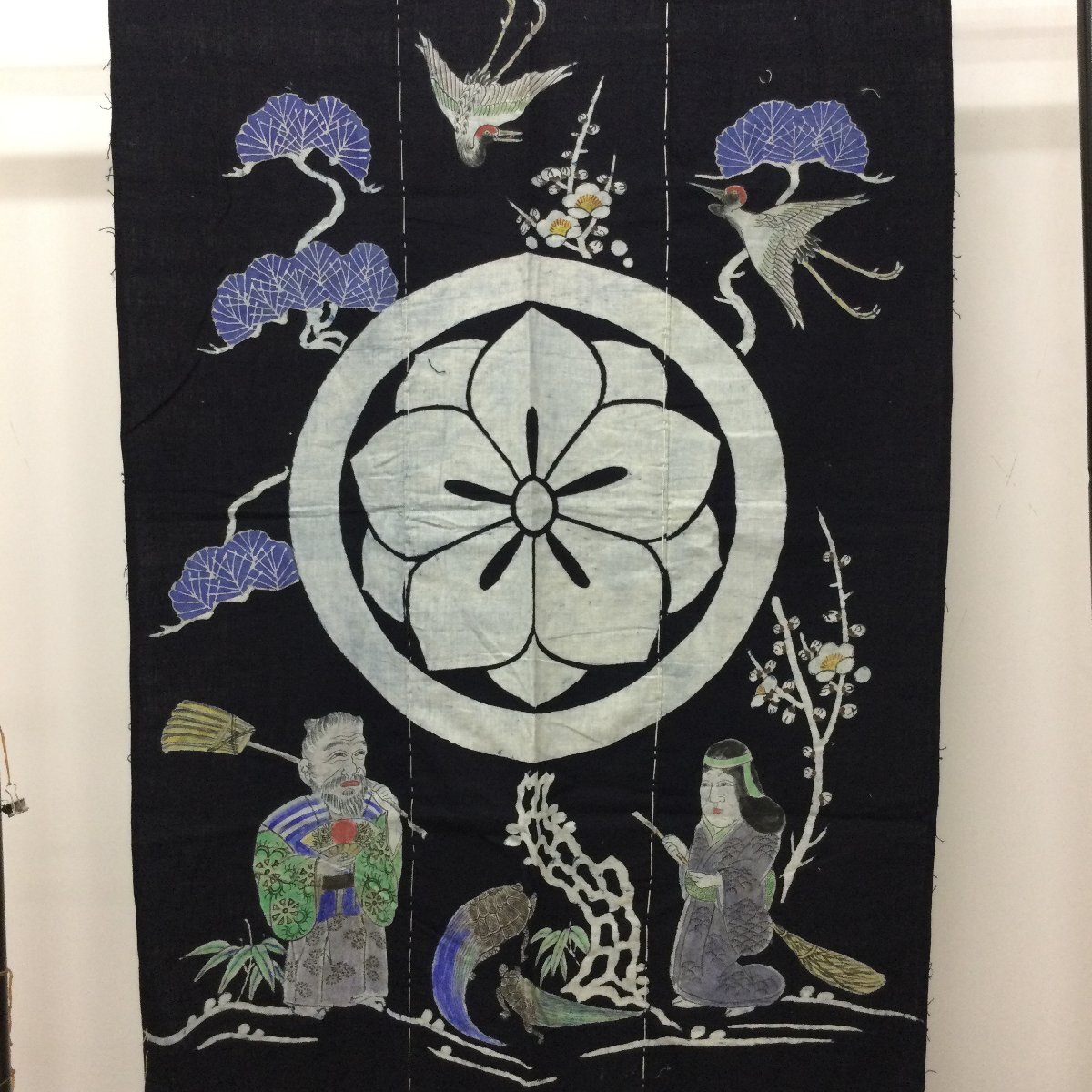 > 〔楽布特選〕P33397 古い 筒描き 木綿 松竹梅 鶴亀 97cm×142cm 古布古裂 オークション k