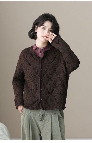 - yh セール カーディガン 羽織物 ニット セーター チュニック フリーサイズ 通勤着 普段着 茶色系