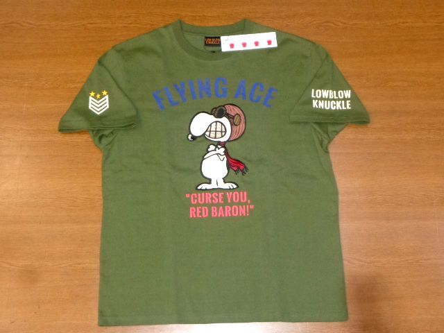 > LOW BLOW KNUCKLE PEANUTS コラボ Tシャツ スヌーピー[カーキXLサイズ/ロー ブロー ナックル SNOOPY 523400 TOP DOG フライング エース