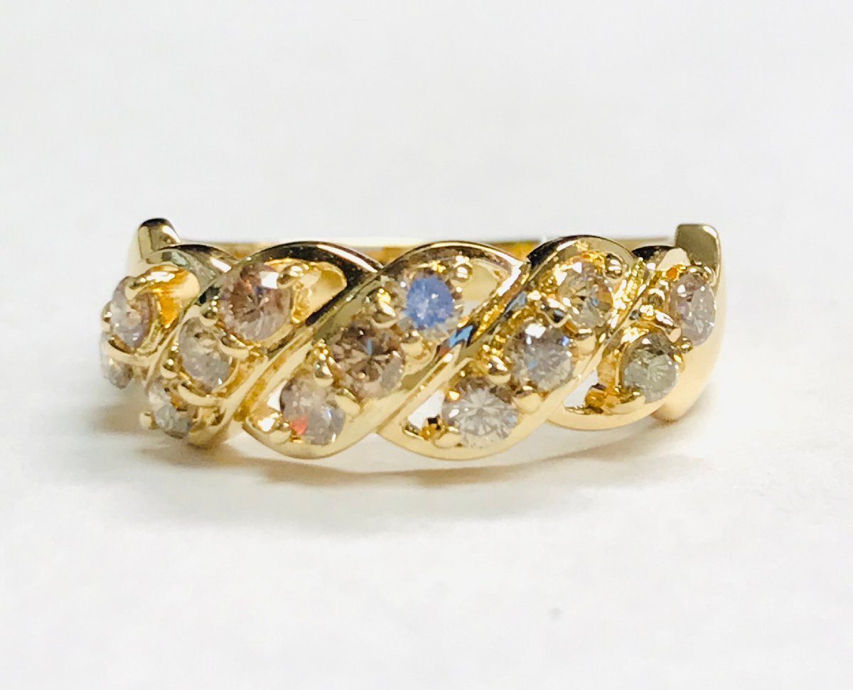 > qoj.ZAK07 K18 ゴールド ブラウンダイヤモンド デザインリング 13PD0.56ct 10号