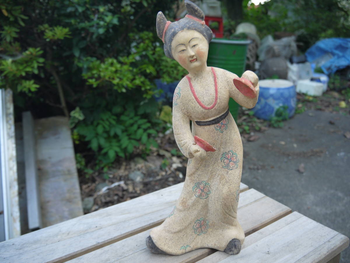 - ★【A30724】中国古玩 中国古美術 唐物 灰陶 加彩婦人俑 高さ30cm コレクター放出品