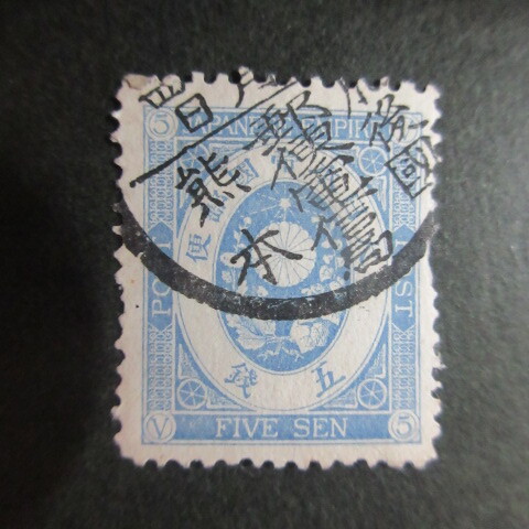 - 【大型丸一縦書印】小判5銭 肥後國/郵便電信局/熊本 (少ない)