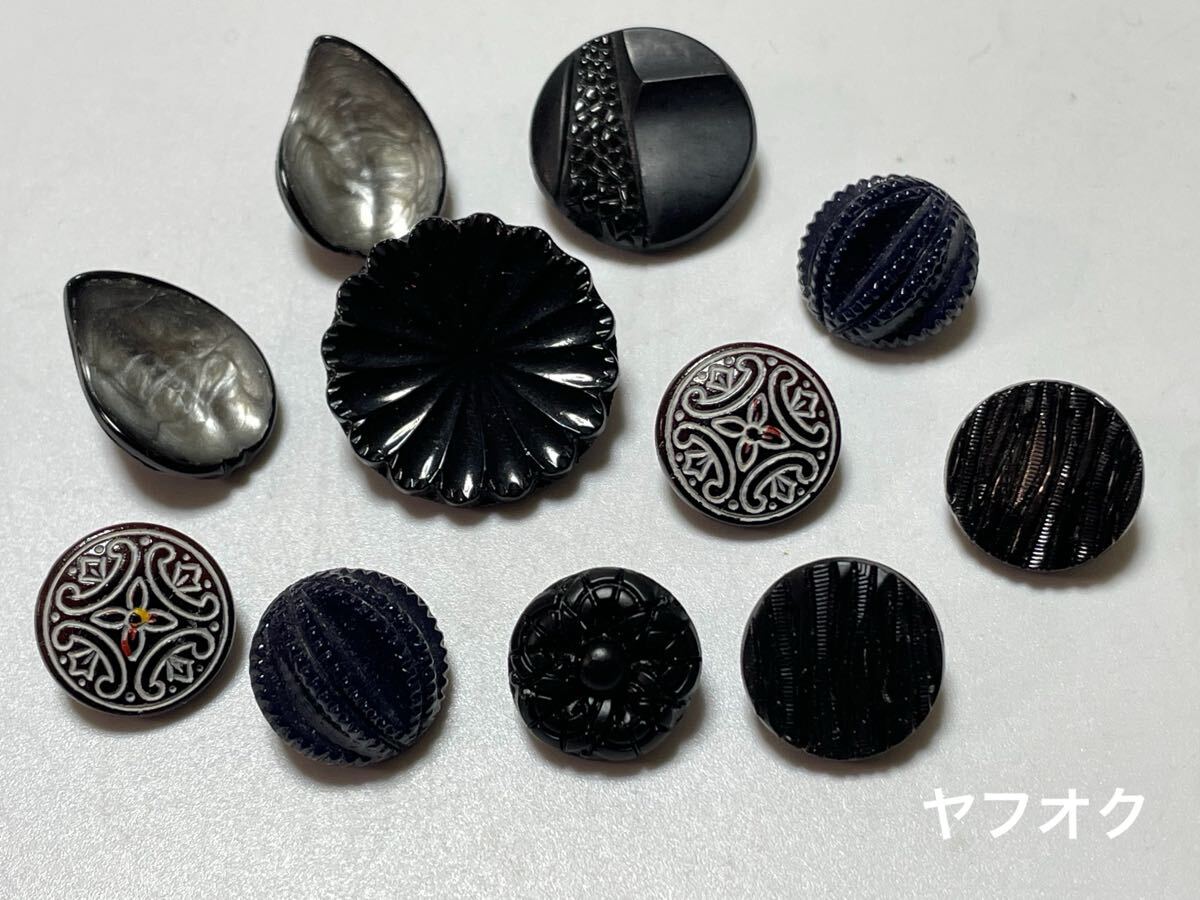 - ガラスボタン 11個 ドイツ ヴィンテージ 13〜22ミリ ブラック シルバー ペイント