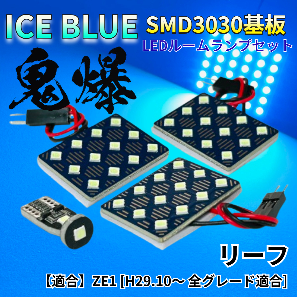 > 【アイスブルー】リーフ ZE1 [H29.10~ 全グレード適合] 鬼爆基板 3030SMD LED ルームランプ セット 車内灯 室内灯 パーツ アクセサリ
