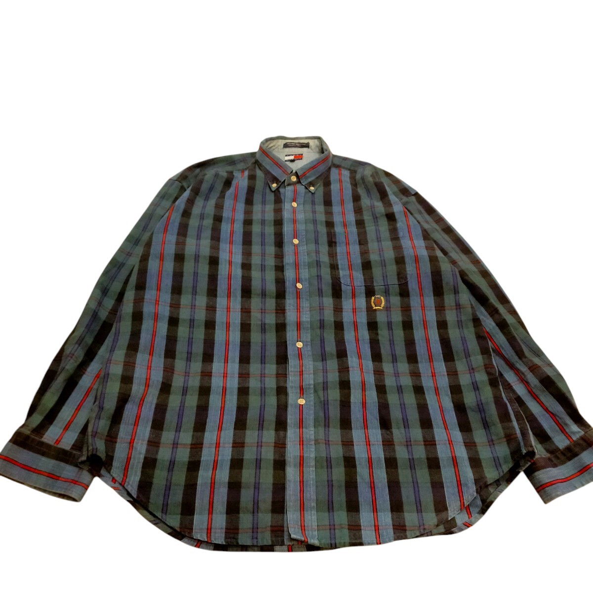 - 古着 トミーヒルフィガー 長袖シャツ ボタンダウン チェックシャツ ヴィンテージ 90s