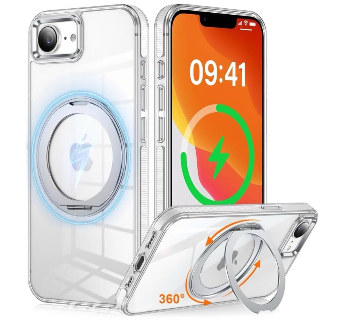 > iPhone16e用 ケース 多機能 360度回転スタンド MagSafe対応