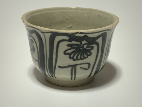 - 【酒器】 時代物 『呉須絵 草花文 ぐい呑み/お猪口』 状態良好 定形外可 H0922H