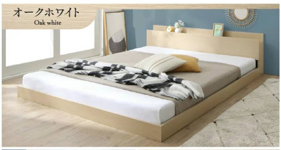- フレームのみ【アウトレット品】ダブル 棚コンセント付き ローベッド フロベッド オークホワイト 4-12