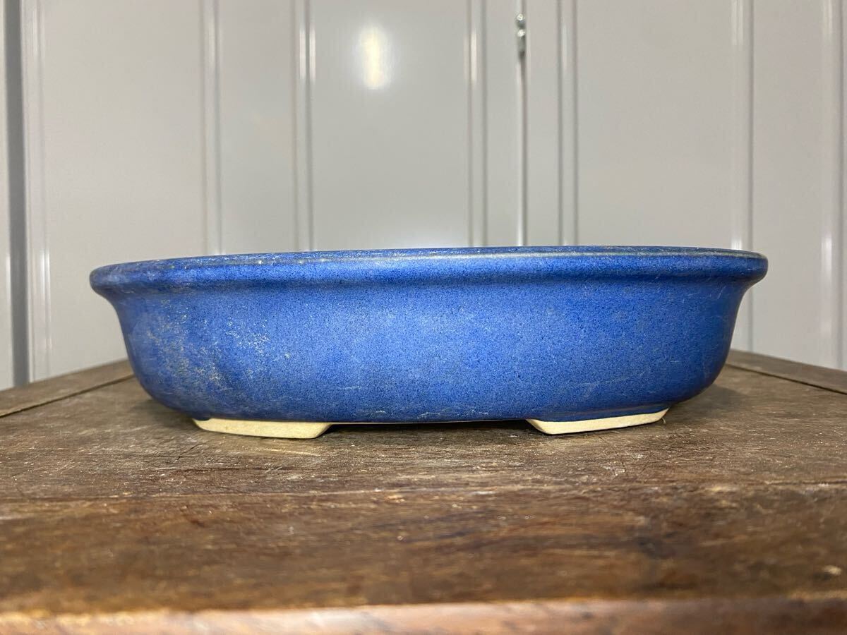 - 盆栽鉢 楕円 青 釉 6号 小品盆栽 松盆栽 松柏 雑木 寄せ植え 観葉植物 多肉植物 山野草 花 盆栽 ガーデニング 鉢 植木鉢