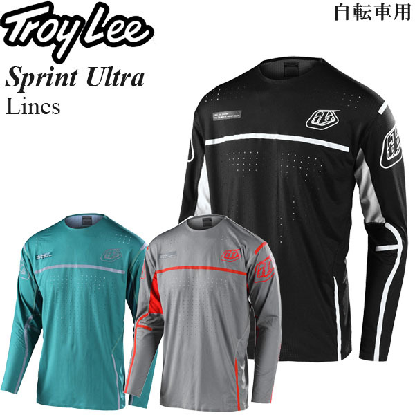 > Troy Lee ジャージ 長袖 自転車用 Sprint Ultra Lines ブラックホワイト/XL