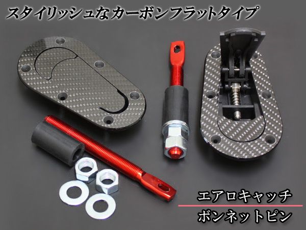 - ボンネットピン フラットタイプ リアルカーボン 左右セット
