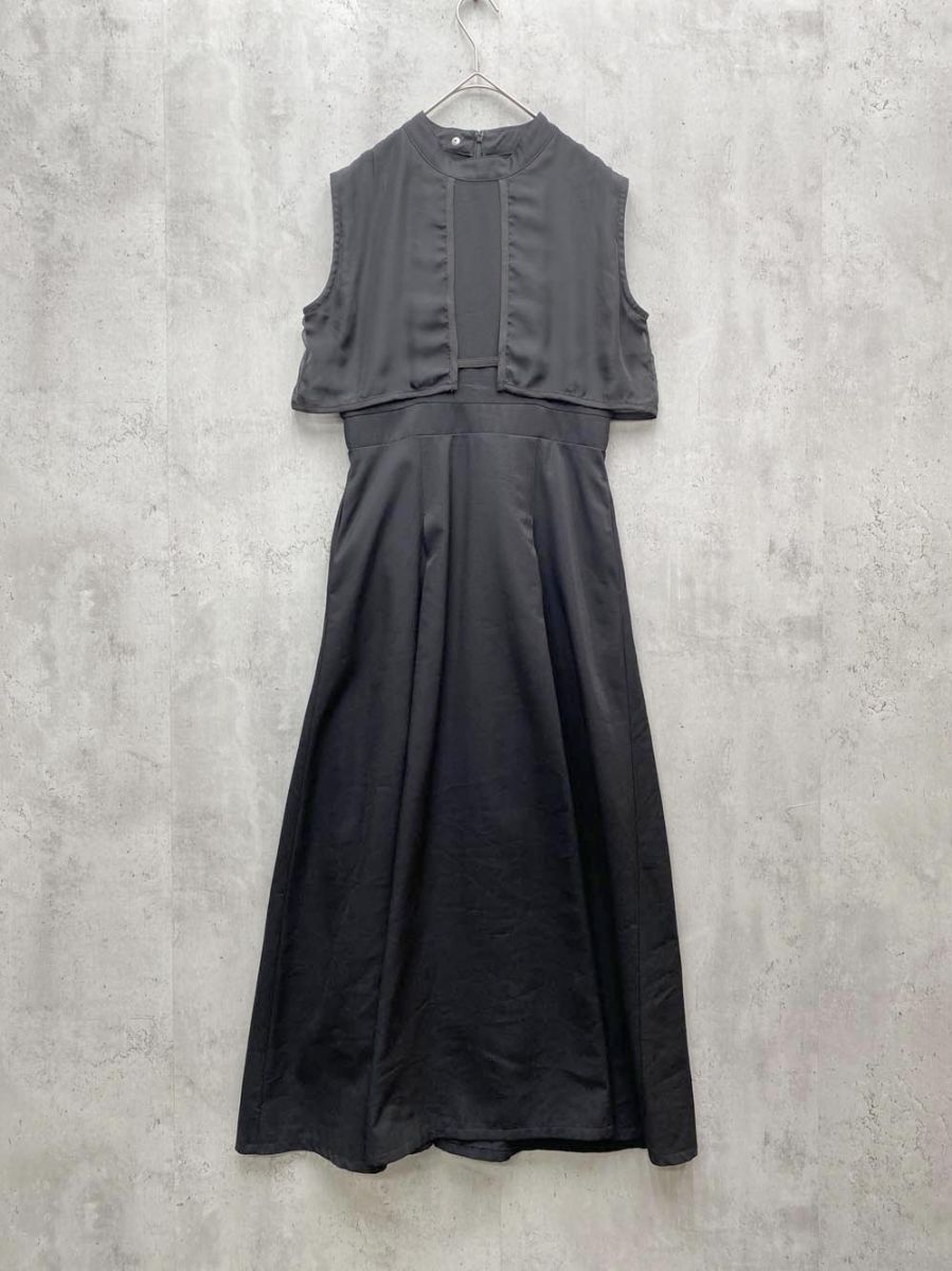 > ゆうパケットOK &g’aime アンジェム 988-60420 ノースリーブ ロング シアーケープ ワンピース sizeF/黒 ■◆◎