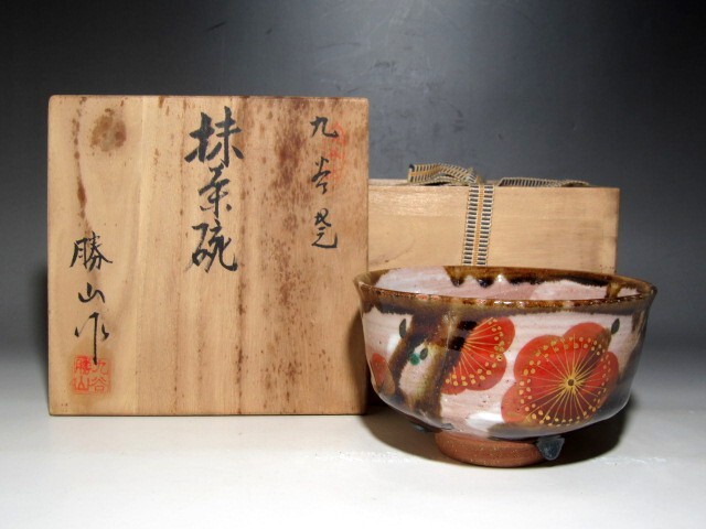 - 吉田勝山 久谷梅の絵茶碗 堀内流十二代兼中斎宗完花押☆z325