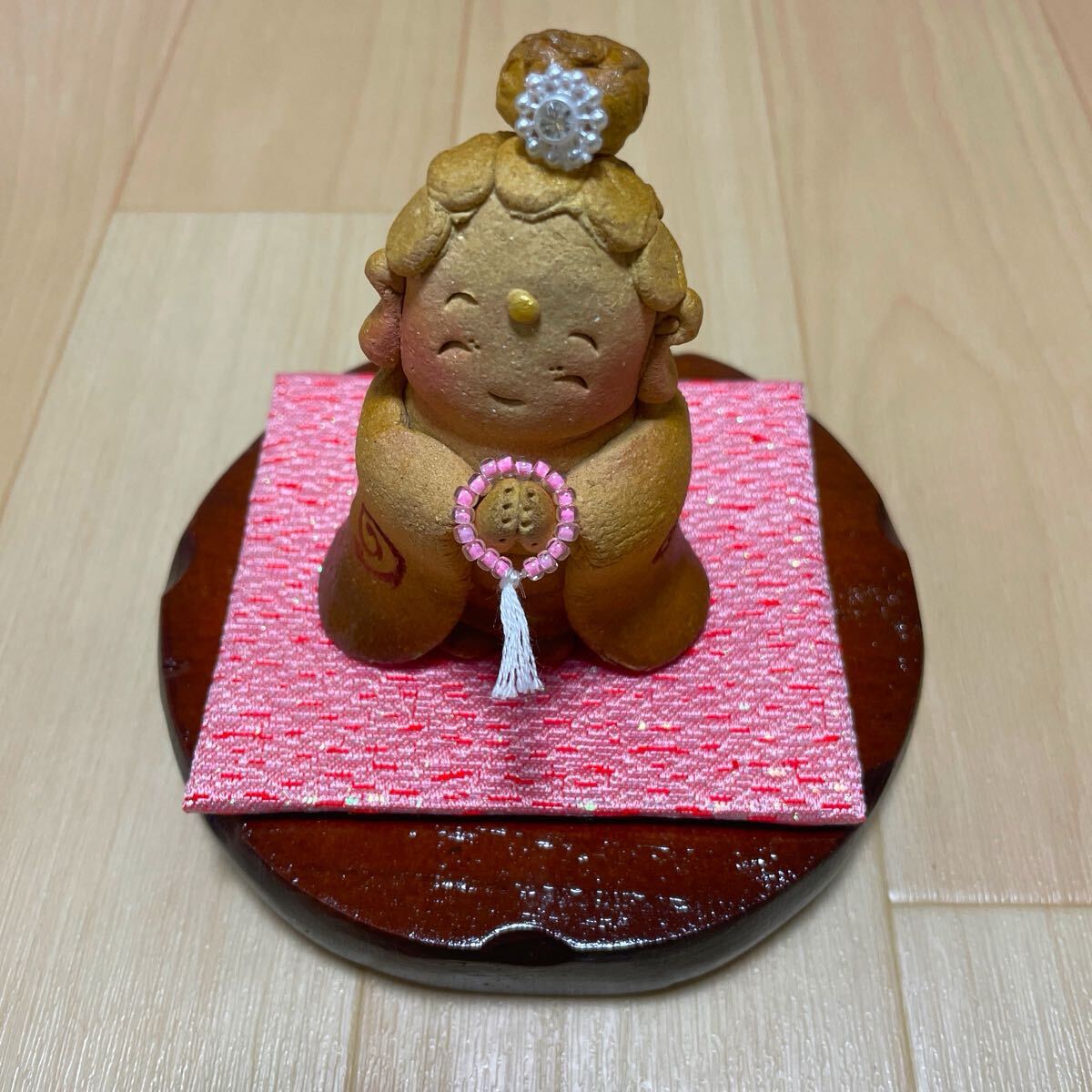- 観音様 観音さま お守り 陶器 信楽焼き 置物 インテリア ハンドメイド 新品 一点物 飾り台付き か