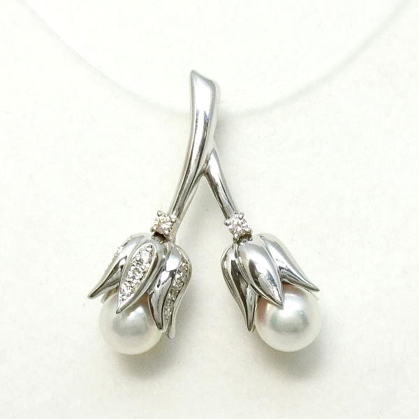 > 【送料無料】タサキ 田崎真珠 TASAKI K18WG フラワーモチーフ ペンダントトップ パール・ダイヤモンド0.15ct ★新品仕上げ済