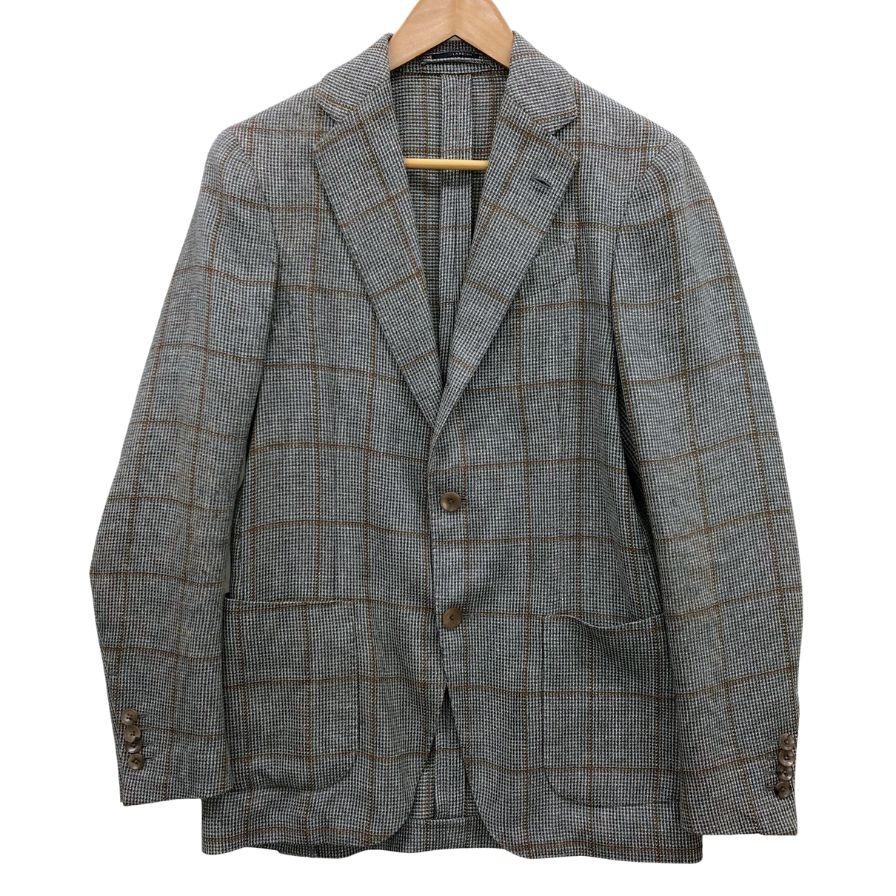> 美品◆ジャケット ラルディーニ テーラードジャケット ウール リネン シルク チェック柄 グレー系 サイズ42 7REG LARDINI 【AFB41】