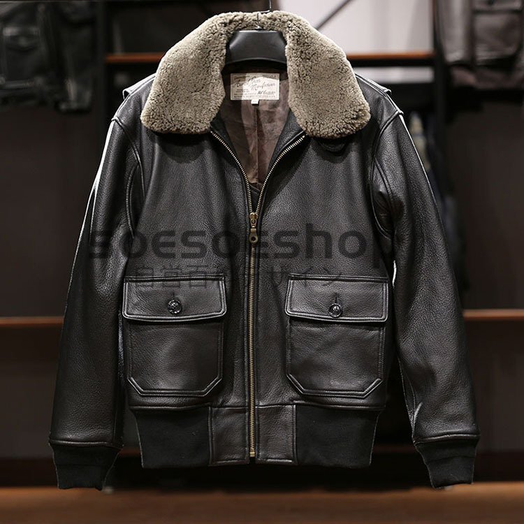 - 秋冬 上品 G1フライトジャケット メンズ ミリタリージャケット 空軍 カジュアル 羊革 本革 ウール 襟取り外し可能 革ジャン S~XXL黒