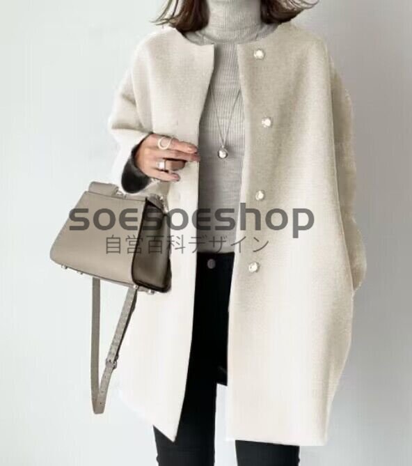 - 人気新品フェイクウールなシンプルショートコートジャケット新品大きいサイズ裏地つきでずーっと使えるアプリコット