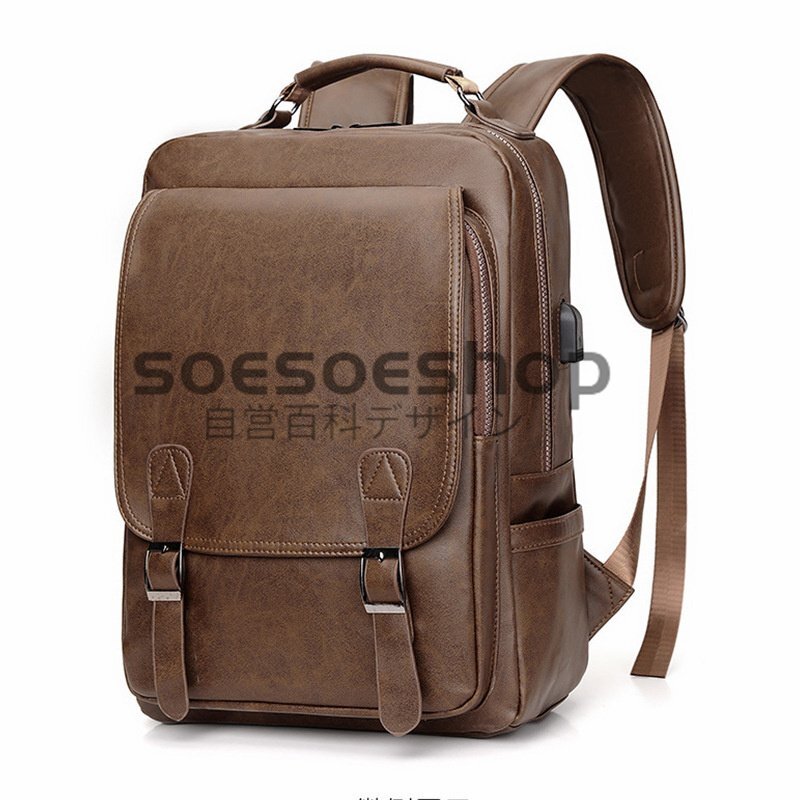 - 新入荷ビジネスリュック リュックサック バックパック メンズ バックパック USBポート軽量カジュアル仕事用男女兼用 スクエアバッグカーキ