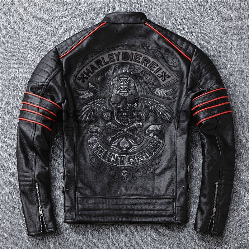 - レザージャケット 上品 本革 超豪華刺繍ドクロカウハイド ライダース ジャケットメンズファッションバイクジャケット 牛革革ジャン S~6XL