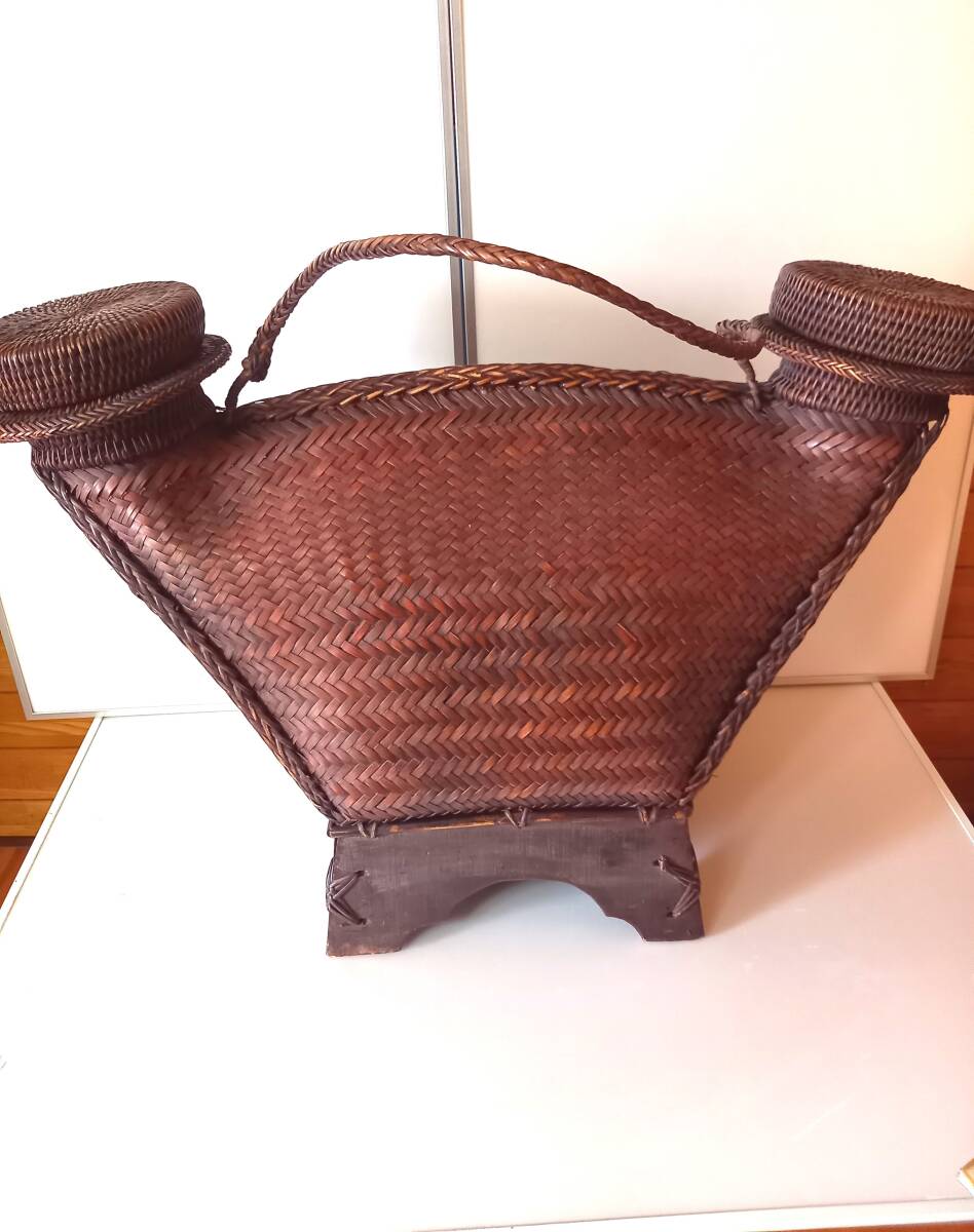 - 獲物入れ ざる カゴ 竹製品 古道具 農具 民芸品 工芸品 昭和レトロ 農作業 特大 小道具 花籠 インテリア バスケット 花入れアンティーク